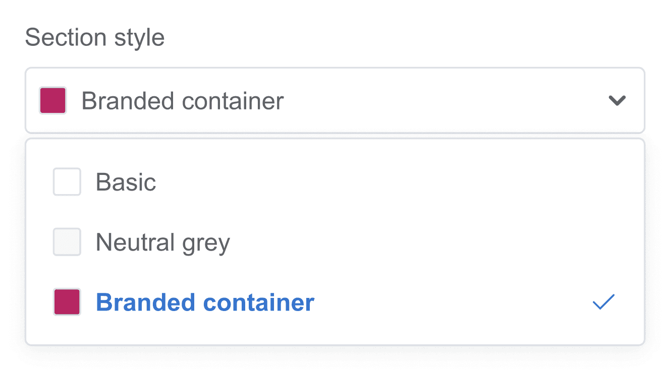To give our users a level of controlled freedom, I created the "Section style". These were 3 preset text and background combinations to choose from.