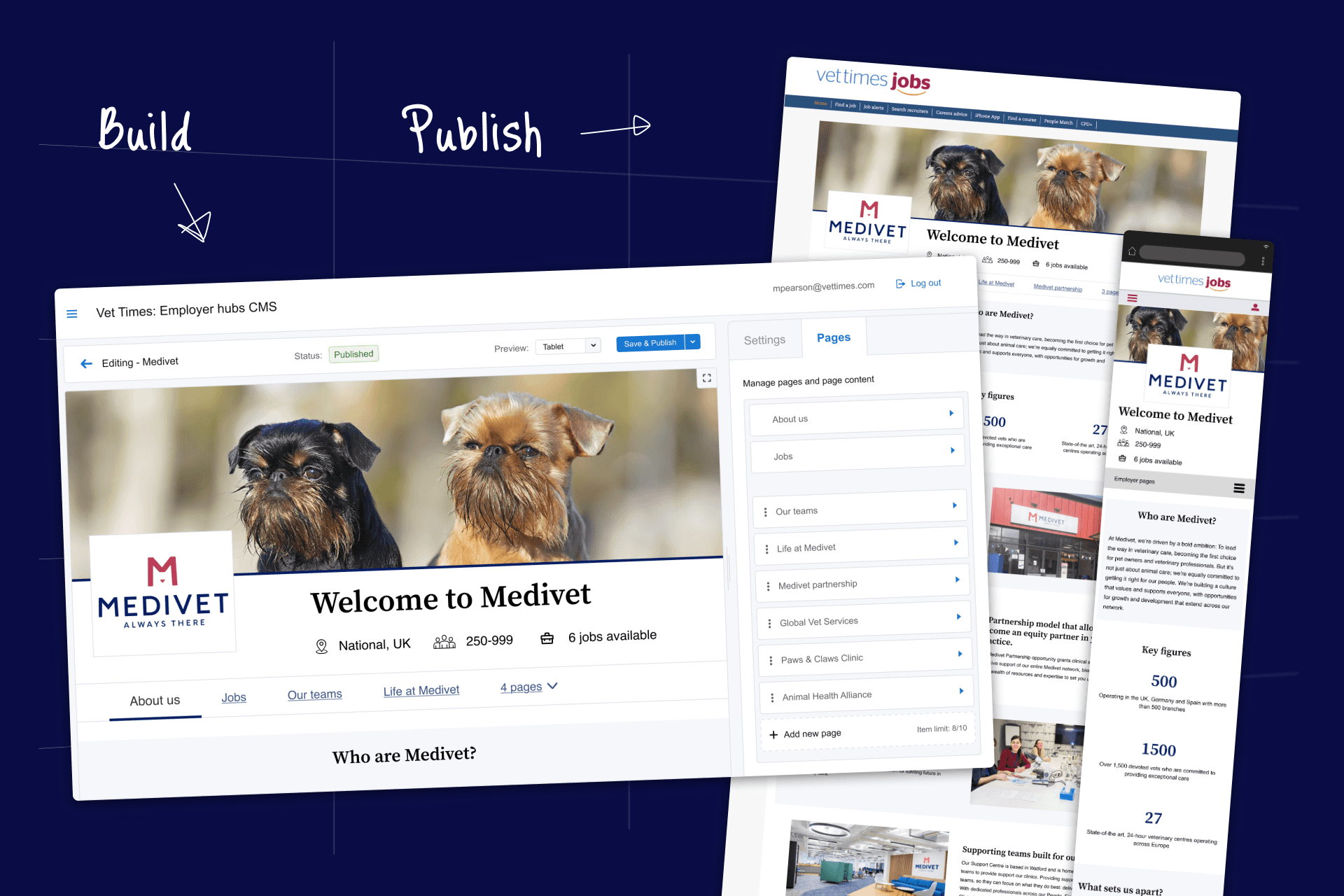A page builder embedded in career center CMS that lets clients self publish custom-branded Employer hubs. These hubs can showcase company culture, values, and career opportunities - helping great employers stand out, and keeping job seekers within our ecosystem.