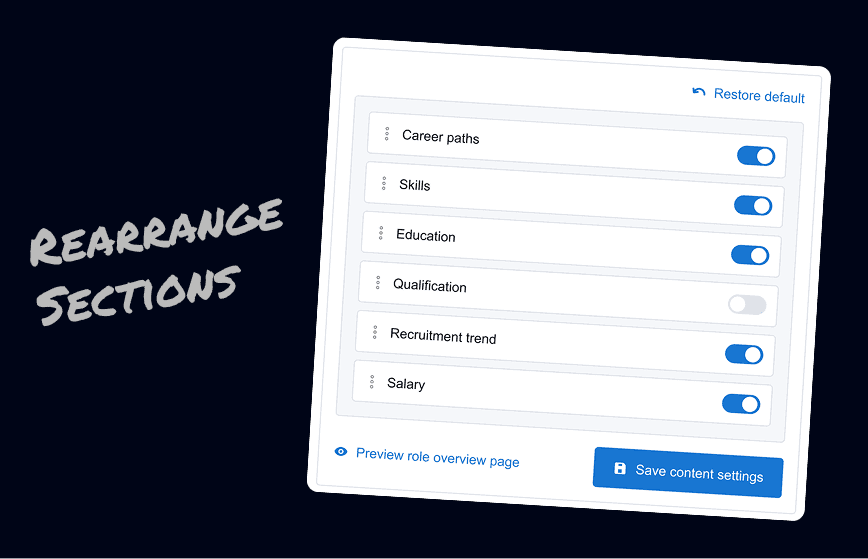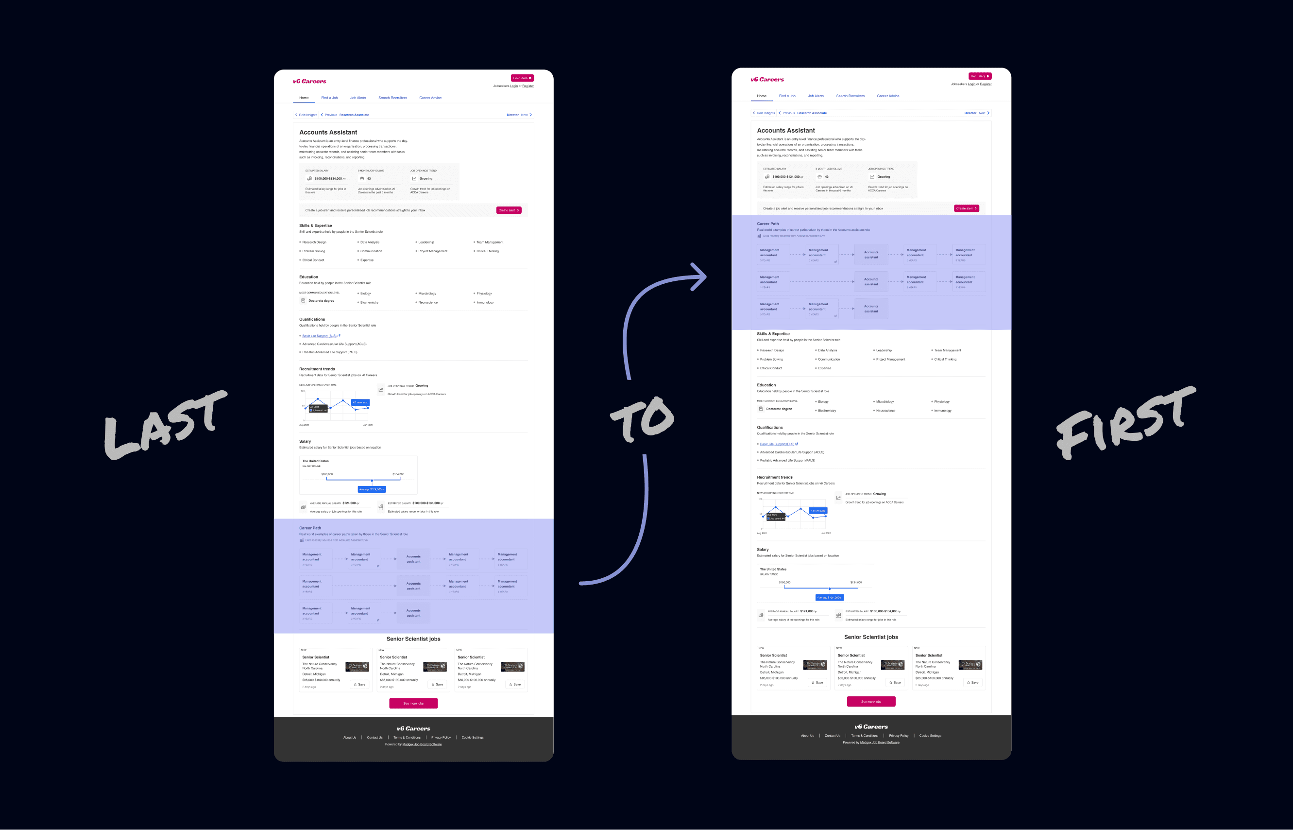 So we added a feature in the CMS for clients to rearrange sections or switch them off if they felt confidence wasnt sufficient. We defaulted the Career paths section to the top to reflect our users' priorities.