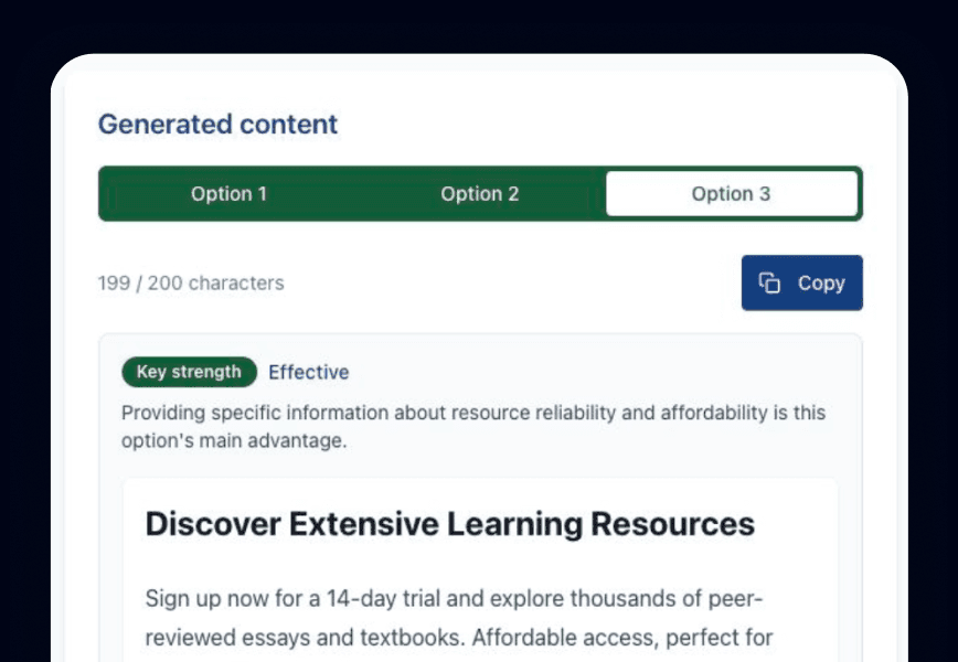 A CTA on a job alert email is fundamentally different from a CTA on a pricing page. Generic AI writing tools ignored this. The tool needed structured inputs such as content type, audience and goals to generate anything useful.